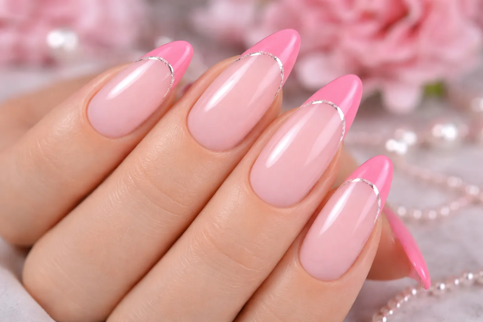 • Micro French tips in Barbie pink